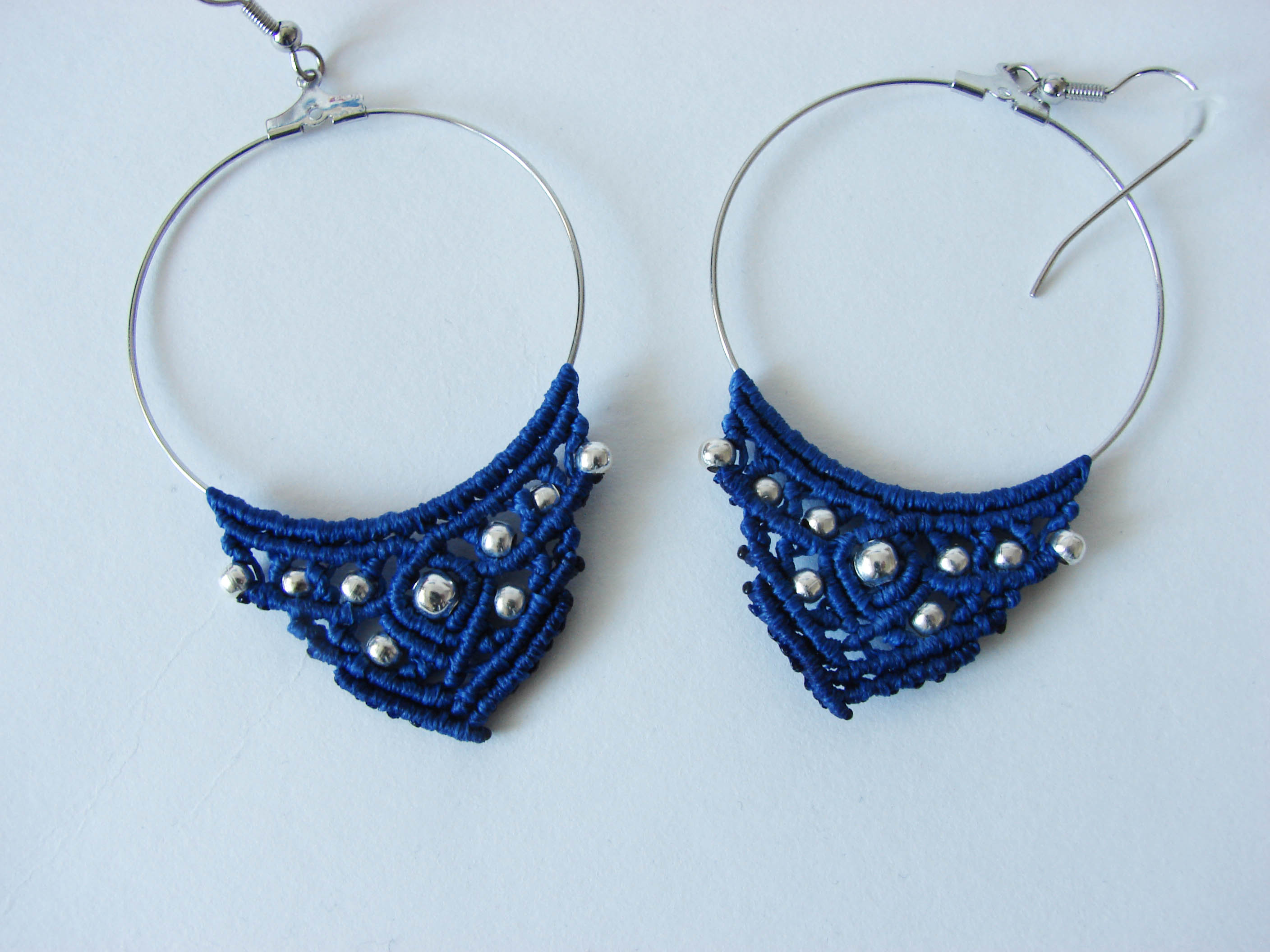 Blue Macrame Earrings "Blue Lagoon" with metal beads